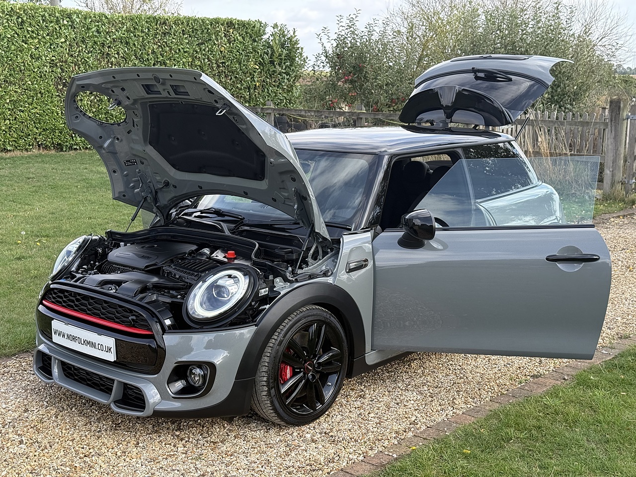 A great looking Mini Cooper S Sport finished in Metallic Moonwalk Grey. The car has the optional Navigation pack with Apple car play, Comfort pack (Heated seats, dualzone climate control, Rear parking sensors), Punch leather seats, and Harman Kardon Hi-Fi upgrade. The previous owner has also upgraded the front brakes to full JCW specification, sports lowering springs, and a Carbon / Alcantara flat bottom sport steering wheel with paddle shift gear change. Standard Features of the Sport Model include John Cooper Works Styling, JCW Gloss Black 17" Track Spoke Alloy Wheels, JCW Leather Multifunction Steering Wheel (Cruise Control & Telephone Control), Performance control, Anthracite Headling, Excitement Pack, Auto Lights, Auto Wipers, LED Headlights, and LED Rear Union Flag Lights. The car has a full service history and MOT until September 2026 with no advisories. Keep this vehicle in super condition, ask about our lifetime paintwork guarantee. Buy with confidence, this vehicle comes complete with Full Book Pack, HPI clear certificate, Two keys, and a comprehensive used car inspection. Any trial or inspection welcome, and a warranty is included. Finance is available subject to status. Viewings by appointment.